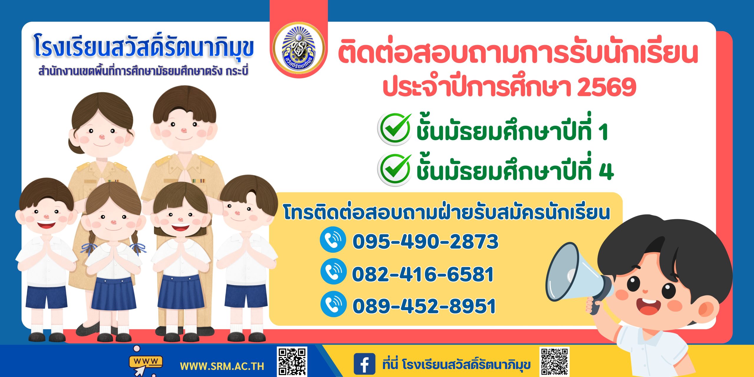 ประกาศโรงเรียนสวัสดิ์รัตนาภิมุข เรื่อง รายชื่อนักเรียนที่มีสิทธิ์สอบคัดเลือกเข้าศึกษาต่อชั้นมัธยมศึกษาปีที่ 1 ห้องเรียนทั่วไป ปีการศึกษา 2569
