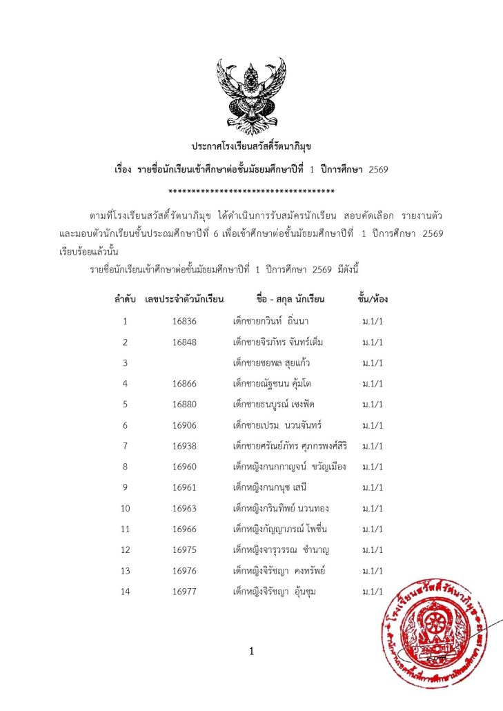 ประกาศโรงเรียนสวัสดิ์รัตนาภิมุขเรื่อง รายชื่อและเลขประจำตัวนักเรียนชั้นมัธยมศึกษาปีที่ 1 ปีการศึกษา 2569 KruTouchy 7 ชั่วโมง ago ข่าวประชาสัมพันธ์ Leave a comment 6 Views Share Facebook