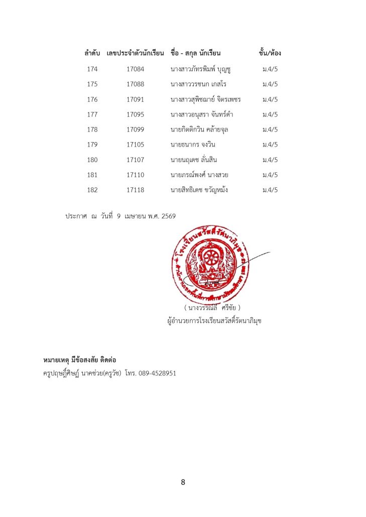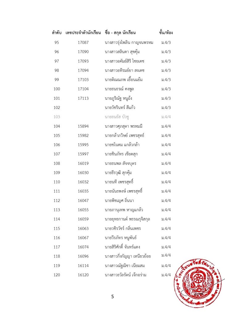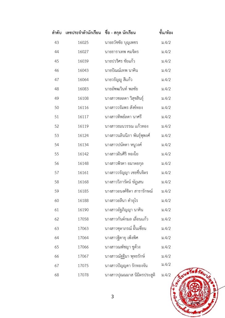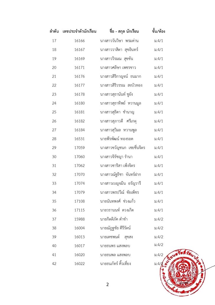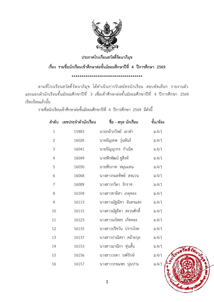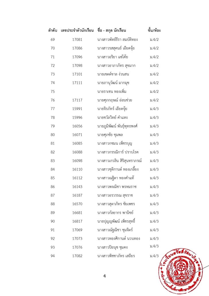 เรื่อง รายชื่อและเลขประจำตัวนักเรียนชั้นมัธยมศึกษาปีที่ 4 ปีการศึกษา 2569