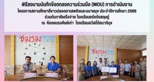 พิธีลงนามบันทึกข้อตกลงความร่วมมือ (MOU) การดำเนินงานโครงการสถานศึกษาสีขาวปลอดยาเสพติดและอบายมุข