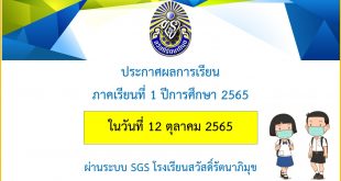 ประกาศผลการเรียนภาคเรียนที่ 1 ปีการศึกษา 2565 ผ่านระบบ sgs ในวันที่ 12 ตุลาคม 2565