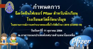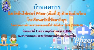 กำหนดการฉีดวัคซีนไฟเซอร์ (เข็มที่2) สำหรับนักเรียนโรงเรียนสวัสดิ์รัตนาภิมุข วันที่ 1 พฤศจิกายน 2564