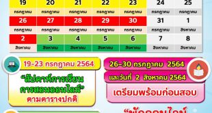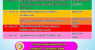 ปฏิทินวิชาการ กำหนดการสอบวัดผลกลางภาค ในสถานการณ์การแพร่ระบาดของเชื้อไวรัสโคโรนา 2019 ภาคเรียนที่ 1 ปีการศึกษา 2564