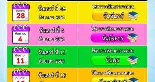 ปฏิทินการเรียนการสอนชดเชย รูปแบบออนไลน์ ภาคเรียนที่ 1 ปีการศึกษา 2564