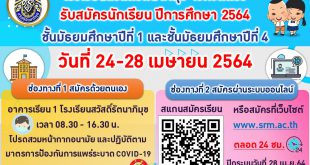 ประกาศรับสมัครนักเรียนชั้นมัธยมศึกษาปีที่ 1 และชั้นมัธยมศึกษาปีที่ 4 ปีการศึกษา 2564