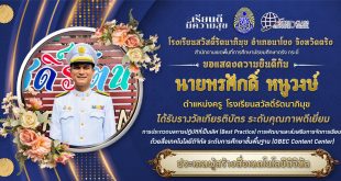 ในโอกาส ได้รับรางวัลเกียรติบัตร ระดับคุณภาพดีเยี่ยม การประกวดผลการปฏิบัติที่เป็นเลิศ (Best Practice) การพัฒนาและส่งเสริมการจัดการเรียนรู้ ด้วยสื่อเทคโนโลยีดิจิทัล ระดับการศึกษาขั้นพื้นฐาน (OBEC Content Center) ประเภทผู้สร้างสื่อเทคโนโลยีดิจิทัล ระดับเขตพื้นที่การศึกษา